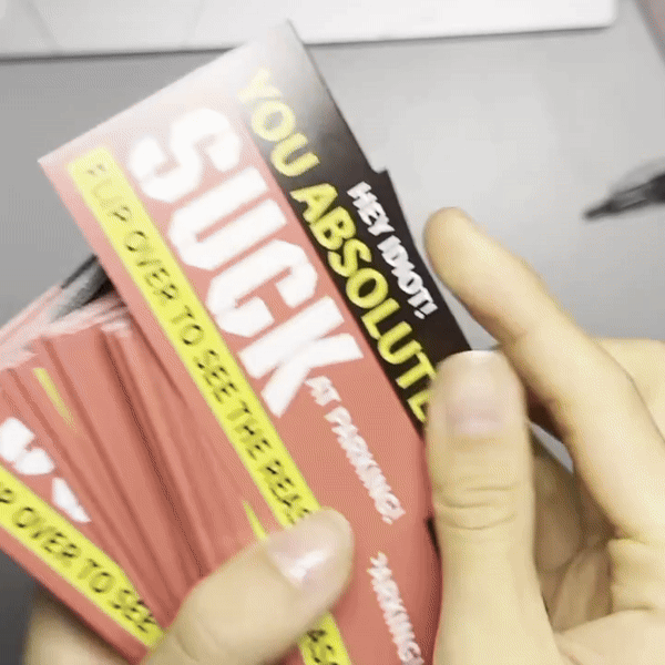 Crafted with unmatched wit and creativity, our cards offer a unique solution to parking frustration, combining humor with assertiveness.